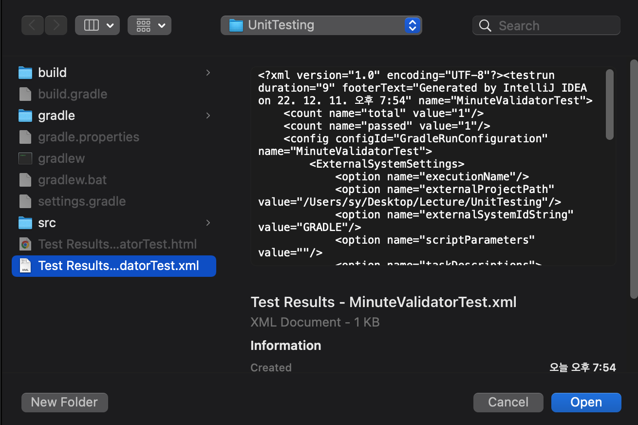 즉, 위 Test Summary는 아래 경로에 생기는 파일을 여는 것임을 확인할 수 있다.