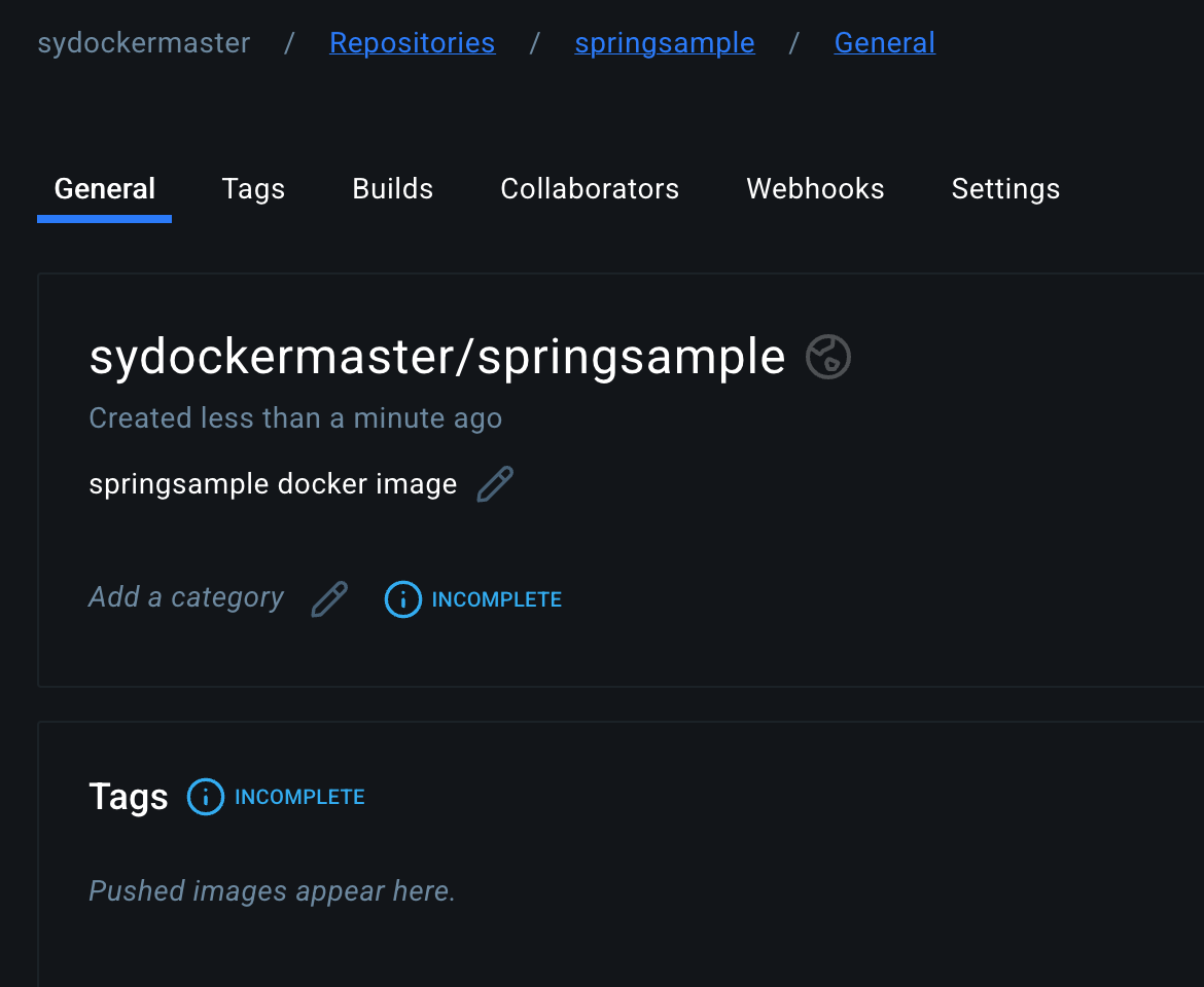 https://hub.docker.com/repository/docker/sydockermaster/springsample/general