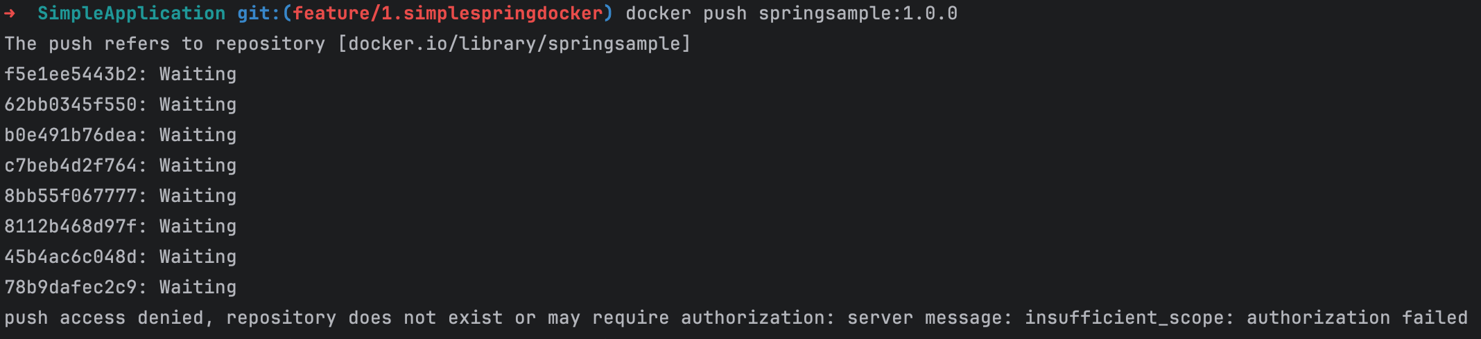 unauthorized 애러가 뜨면 docker login 명령어를 실행한 다음 다시 위의 단계를 진행하면 된다.