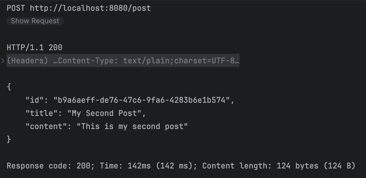 그러면 다음과 같이 b9a6aeff로 시작하는 아이디를 가진 포스트가 생성된 것을 볼 수 있다.